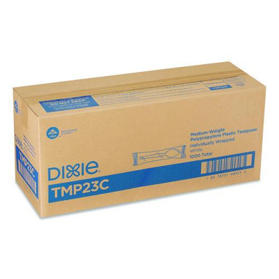Mediumweight Polypropylene Cutlery, Individually Wrapped, Spoon, Plastic, White, 1,000/Carton
