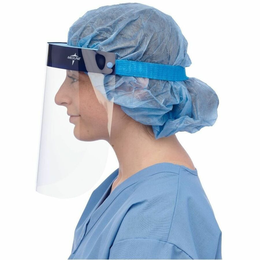 Medline Disposable Full-Length Face Shields - Recommended for: Face - Extra Large - Fog, Splash Protection - Foam, Elastic, Polyester - Clear - Disposable, Anti-fog, Splash Resistant, Lightweight, Latex-free - 40 / Carton