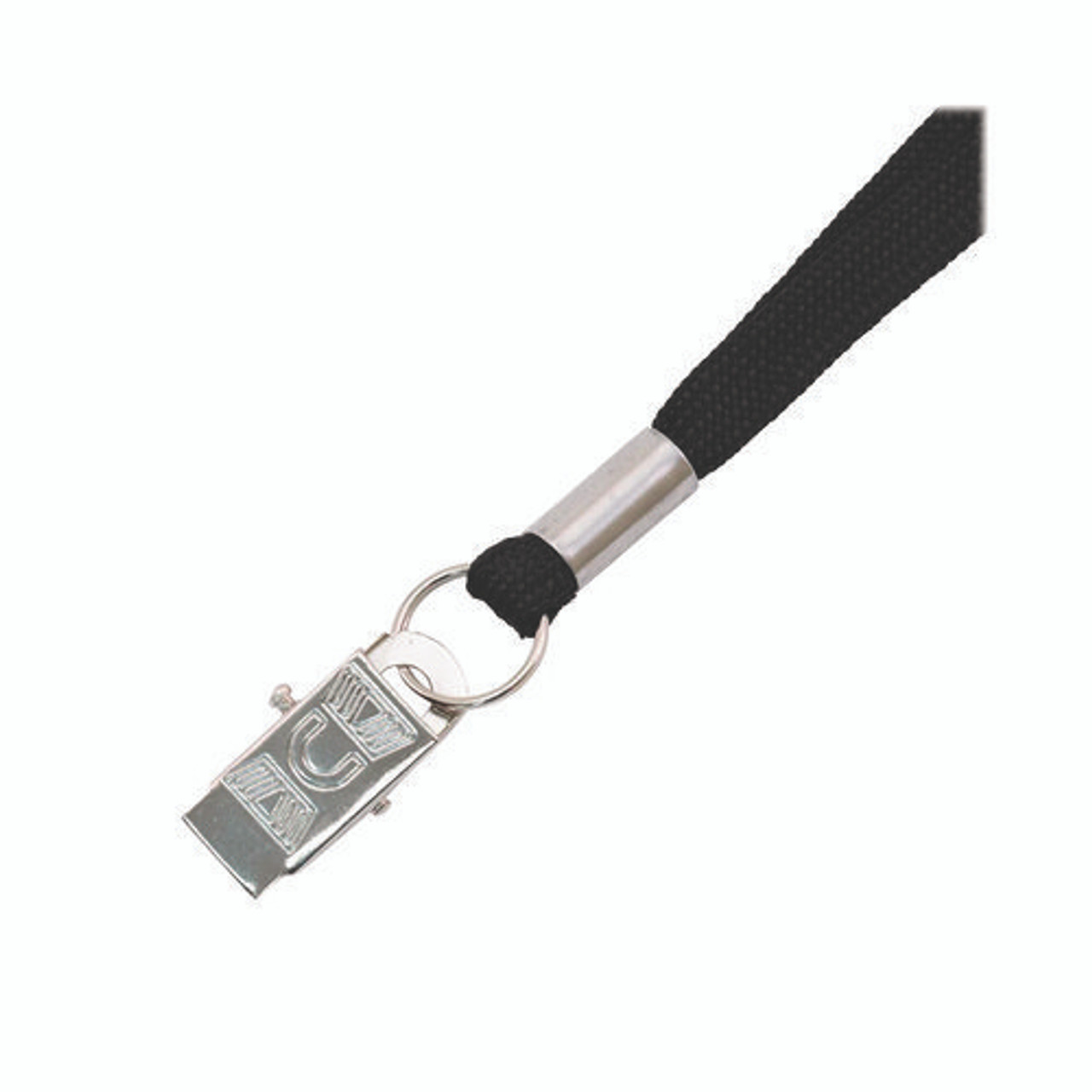 Metal Flat Clip Lanyard, 36" Long, Black, 100/pack
