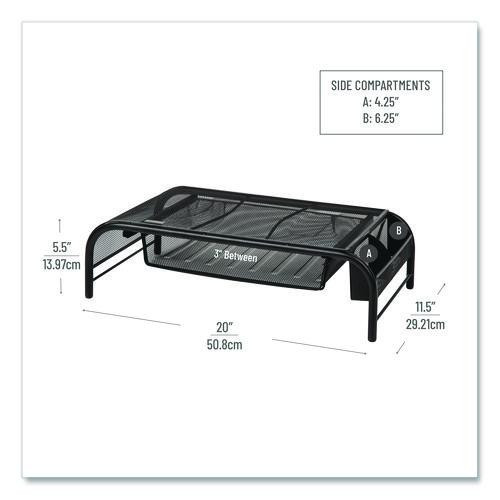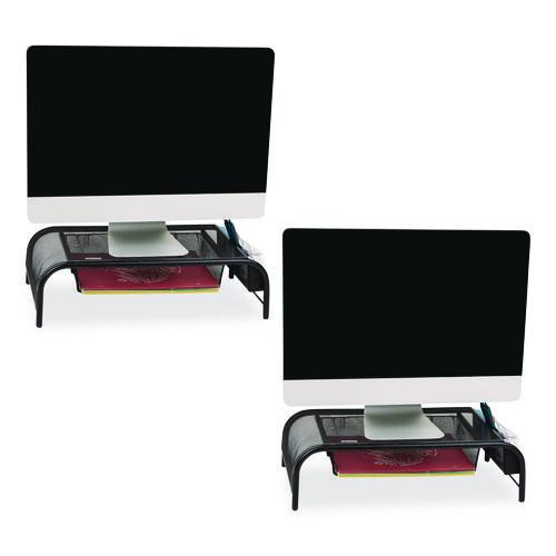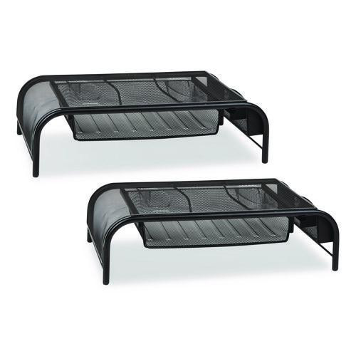 Metal Mesh Monitor Stand With Paper Tray, 20" X 11.5" X 5.5", Black, Supports 33 Lb, 2/pack