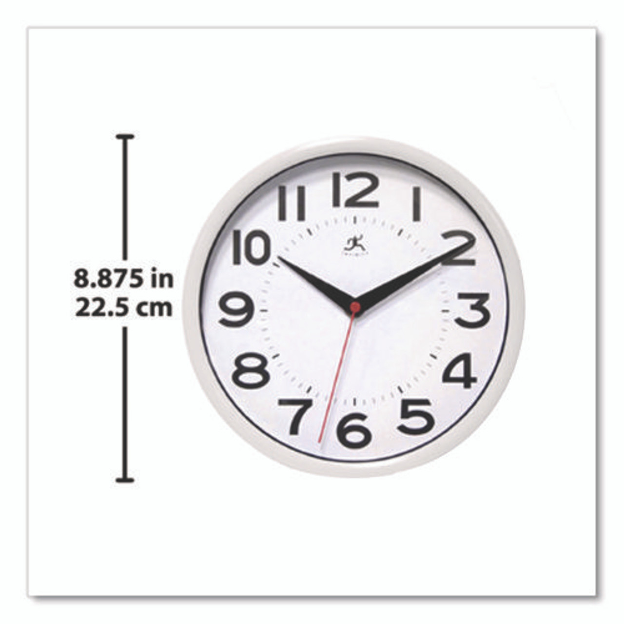 Metro Wall Clock, 9" Diameter, White Case, 1 Aa (sold Separately)