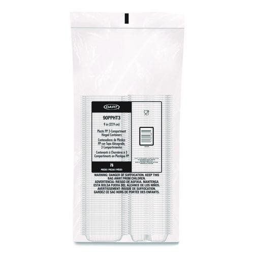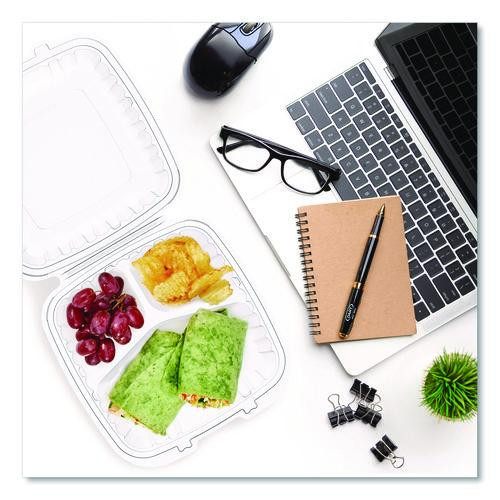 Microwaveable Hinged Containers, ProPlanet, 3 Compartments, 9 x 8.75 x 3, Clear, Plastic,150/Carton