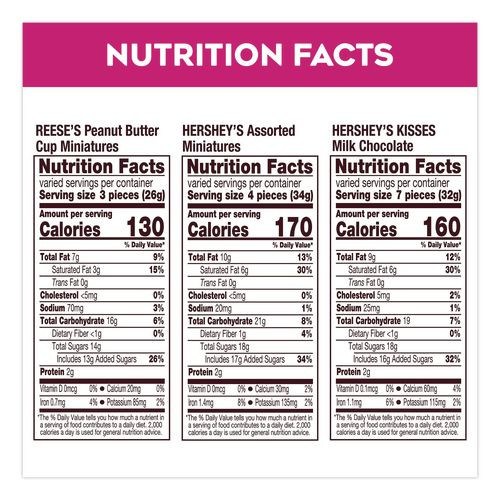 | Flavor: | Hershey®'s Kisses Milk Chocolates; Hershey®'s Miniatures Assortment; Reese's® Peanut Butter Cups Miniatures |