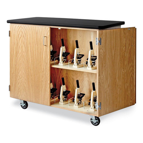 Mobile Microscope Storage Cabinet, 48w x 24d x 40.5h, Black/Oak