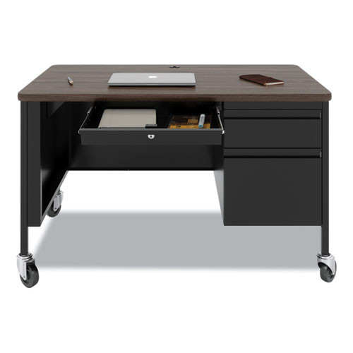 Mobile Teachers Pedestal Desks, Right-hand Pedestal: Box/file Drawers, 48" X 30" X 29.5", Walnut/black