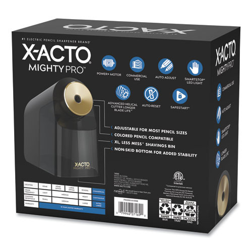 Model 1606 Mighty Pro Electric Pencil Sharpener, Ac-powered, 4 X 8 X 7.5, Black/gold/smoke