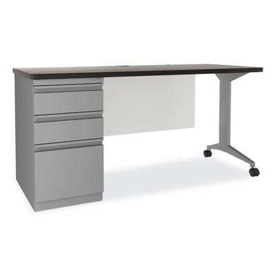 Modern Teacher Series Pedestal Desk, Left-side Pedestal: Box/box/file, 60" X 24" X 28.75", Charcoal Woodgrain/gray
