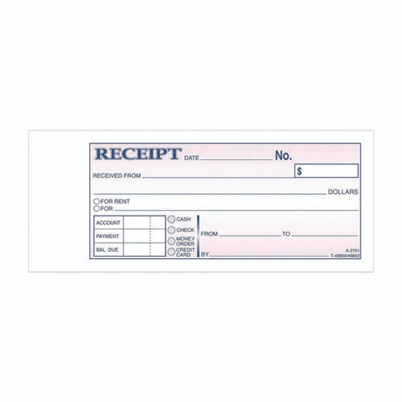 Money/rent Receipt Book, Two-part Carbonless, 6.69 X 2.75, 50 Receipts/book, 5 Books/pack