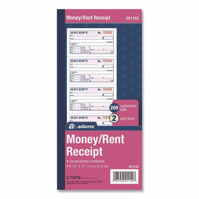 Money/rent Receipt Spiral Book, Two-part Carbonless, 2.75 X 4.75, 4/page, 200 Forms