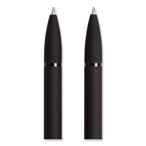 Enjoy style and elegance without sacrificing exceptional function. A matte black exterior with shiny black accent hardware adds some extra chic to any stationary ensemble. The pen barrel is coated with a soft touch lamination film providing a comfortable hold when note-taking. This ballpoint promotes smooth, uniform strokes, allowing for effortless writing when journaling, signing documents, or jotting down notes.