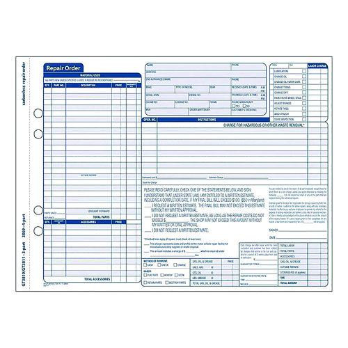 Multipart Auto Repair Work Order Forms With Checklist For Routine Jobs, Three-part Carbonless, 10.94 X 8.5, 50 Forms Total