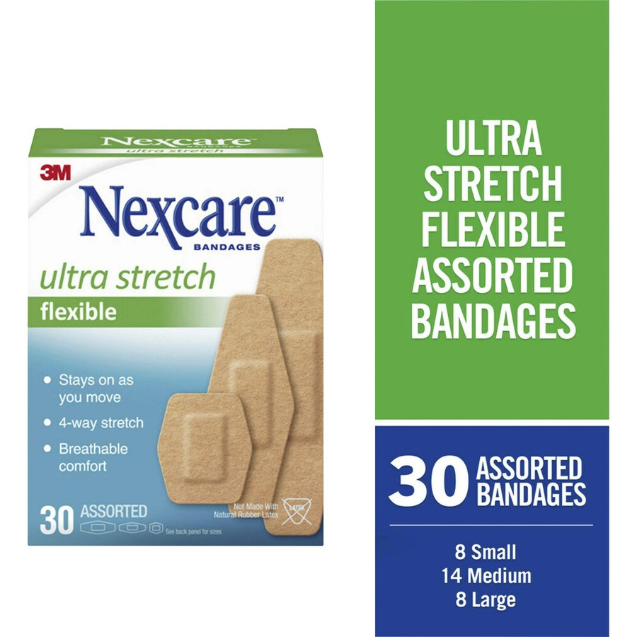 Nexcare Soft 'n Flex Bandages - Assorted Sizes - 0.94" Width x 1.13" Length, - 1.13" Width x 3" Length, - 0.88" Width x 2.25" Length - Tan - Fabric/ - 30 / Box