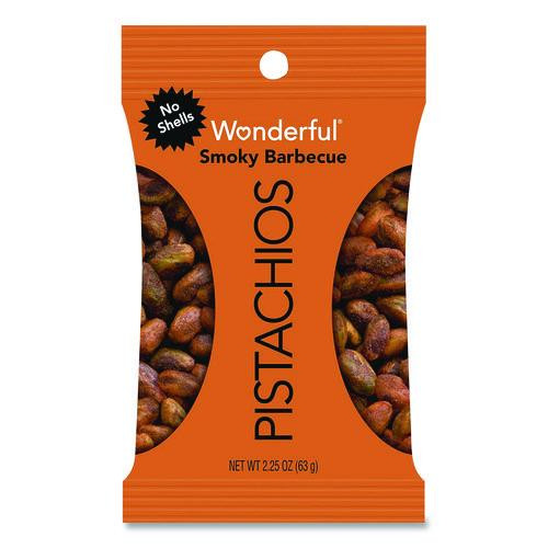 No Shells Smoky Barbecue Pistachios, 2.25 oz Pack, 8/Box