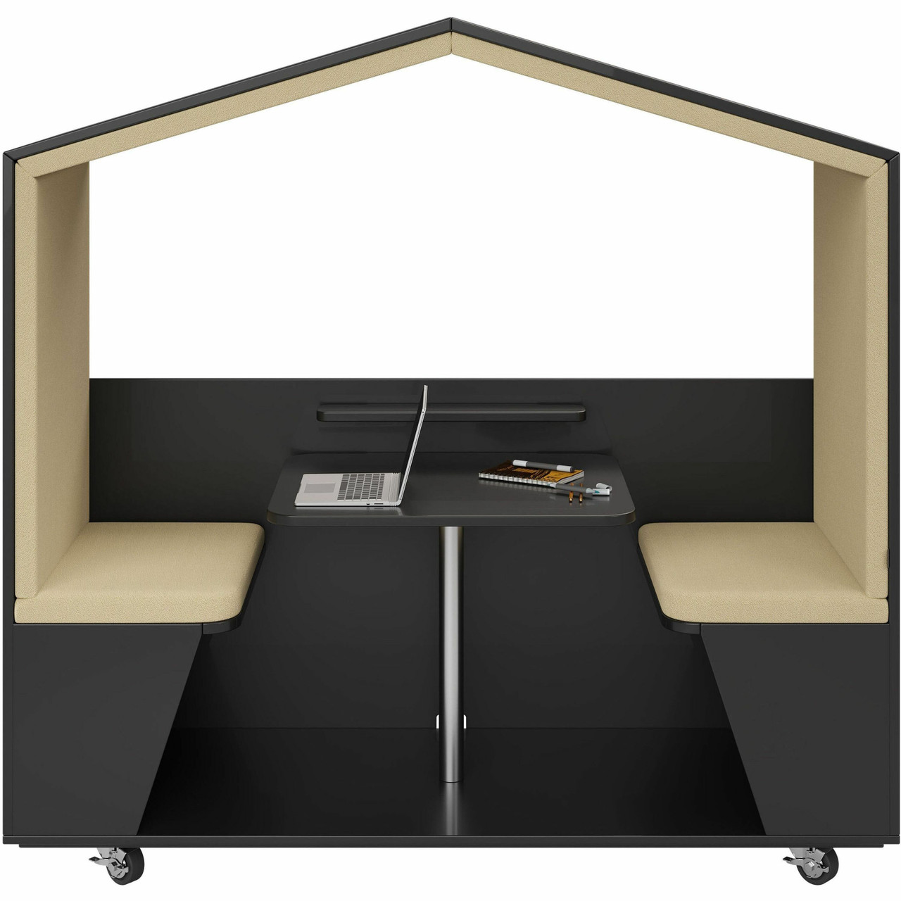 Nook Air complements and extends any space's functionality. Pitched roof and acoustic panels significantly reduce ambient noise. Upholstery is made of post-consumer recycled materials and features a soil-repellent, stain-repellent finish. Nook Air seats up to four people and is ideal for working and healthcare environments, schools, event venues and more. Additional storage spaces under the benches and the small shelf over the table free up space.
