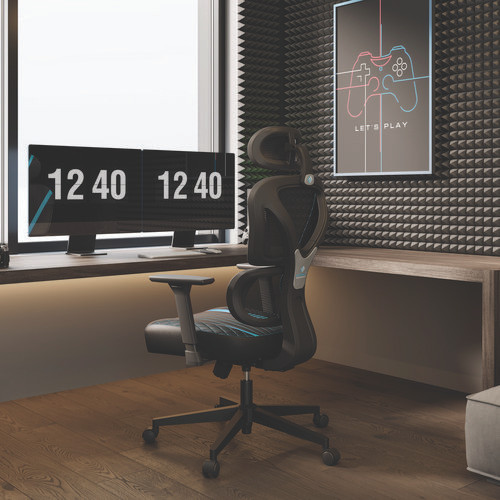 Norn Ergonomic Chair, Supports Up to 275 lb, 18.11" to 22.04" Seat Height, Black/Blue Mesh Seat/Back, Black Base