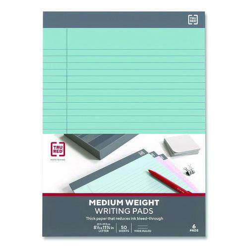Notepads, Wide/Legal Rule, (50) Assorted Pastel Color 8.5 x 11 Sheets, 6/Pack