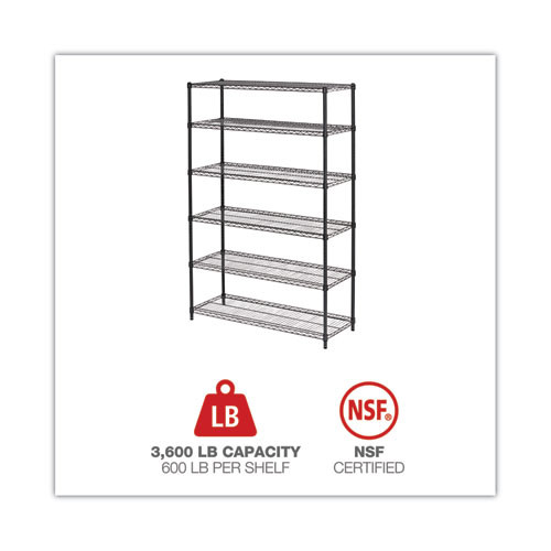 Nsf Certified 6-shelf Wire Shelving Kit, 48w X 18d X 72h, Black Anthracite