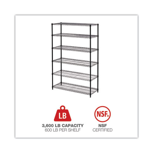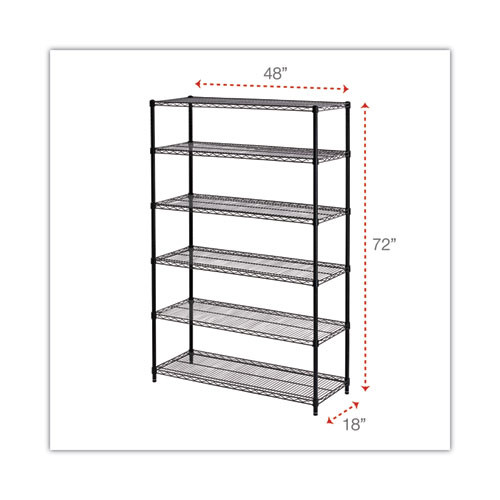 Nsf Certified 6-shelf Wire Shelving Kit, Six-shelf, 48w X 18d X 72h, Black