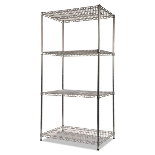 Nsf Certified Industrial 4-shelf Wire Shelving Kit, 36w X 24d X 72h, Silver