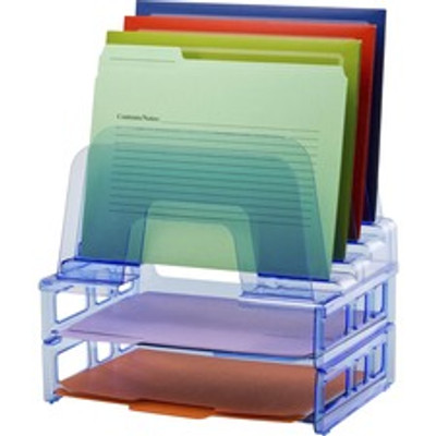 Officemate Blue Glacier Incline Sorter with Paper Trays - 5 Compartment(s) - 14.25" Height x 13.38" Width x 9" Depth - Compact - Transparent Blue - 1 Each