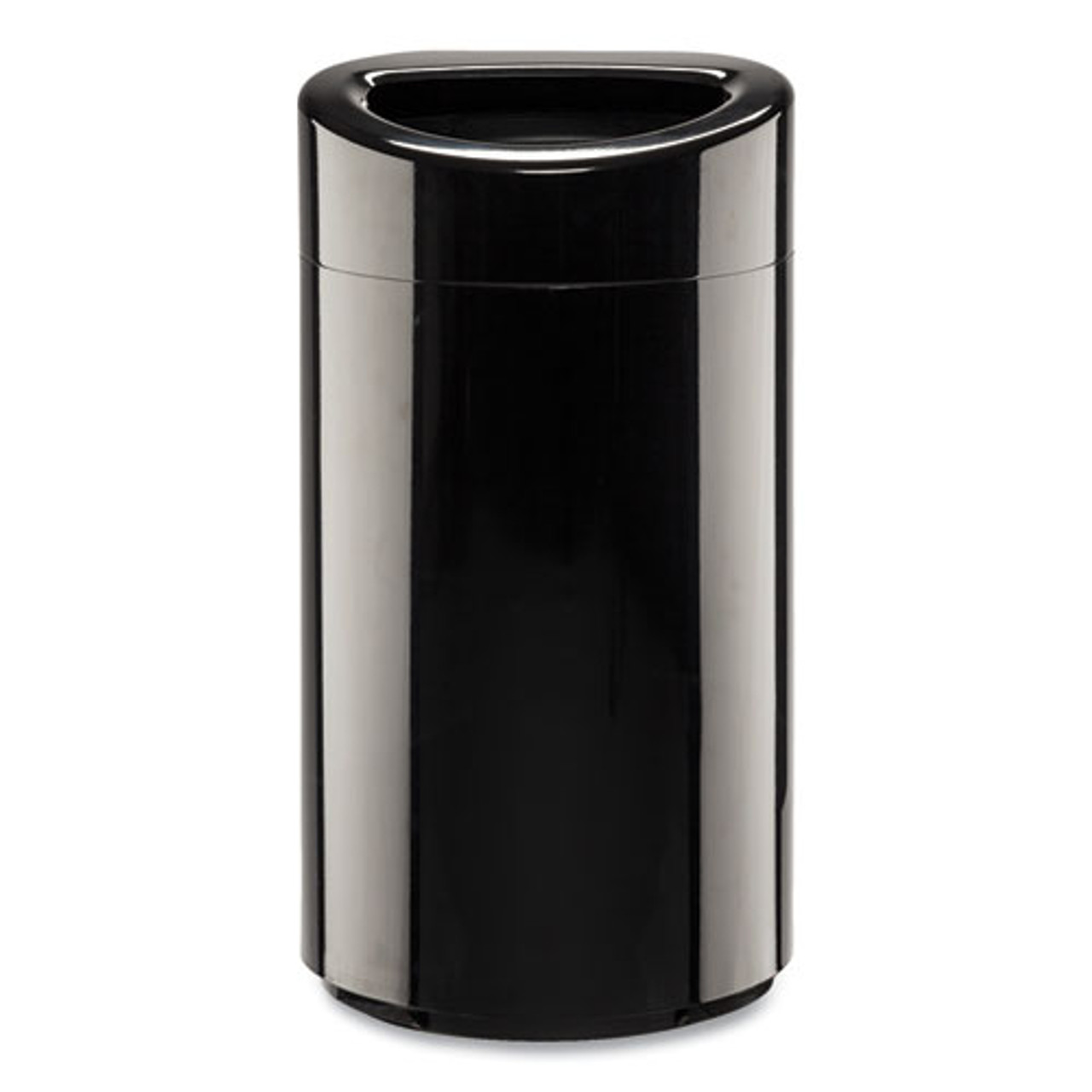 Open Top Oval Waste Receptacle, 14 Gal, Steel, Black