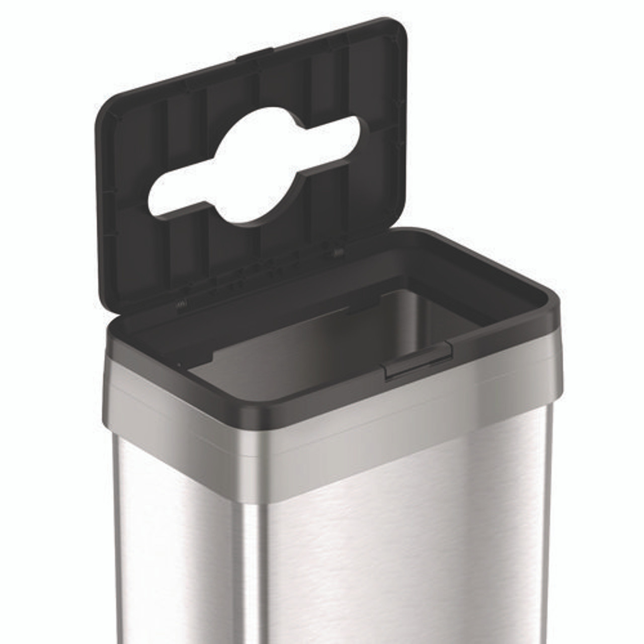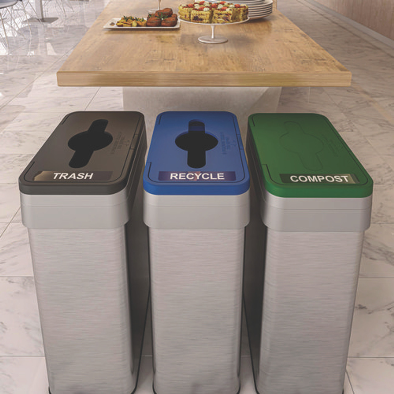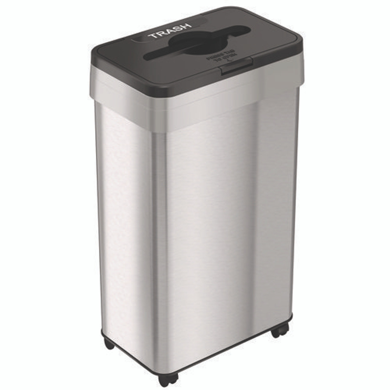 Open Top Trash Bin With Wheels And Color-coded Lid, 21 Gal, Plastic/stainless Steel, Silver/black