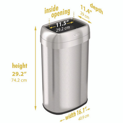 Open Top Trash Can, Rectangular, 16 Gal, Plastic/stainless Steel, Silver