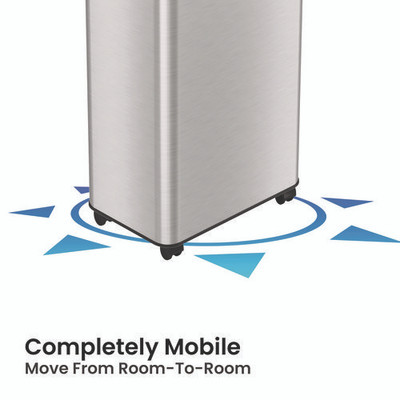 Open Top Trash Can With Wheels, Oval, 13 Gal, Plastic/stainless Steel, Silver