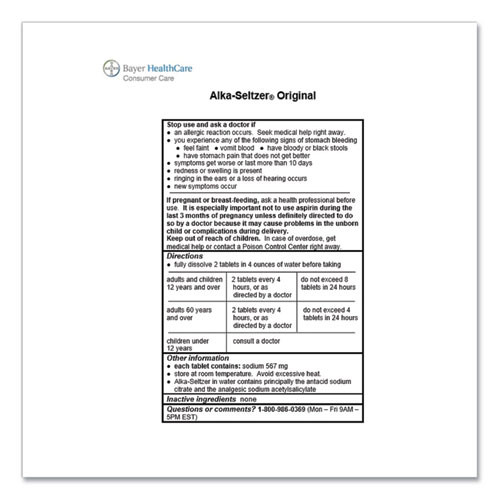 | Contains: | 15 Pouches of Single Dose Alka-Seltzer® |