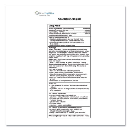 | Contains: | 15 Pouches of Single Dose Alka-Seltzer® |