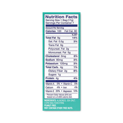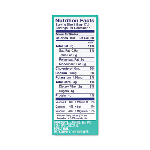 Oven Roasted Sea Salt Almonds, 0.6 oz Bag, 7 Bags/Box, 6 Box/Carton