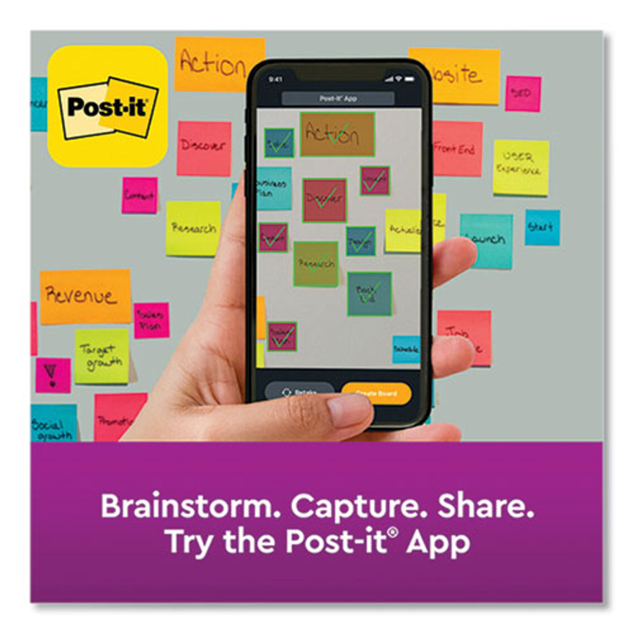 Post-it® Super Sticky Notes have 2X the sticking power to help you organize and keep on top of any project. Colors are from our Supernova Neons collection. Ideas are out of this world with the electric colors of the Supernova Neon collection. Sort your project by color and subject, and accomplish more. Post-it® Super Sticky Notes are recyclable and stick again and again and allow to move your notes with you throughout your day.