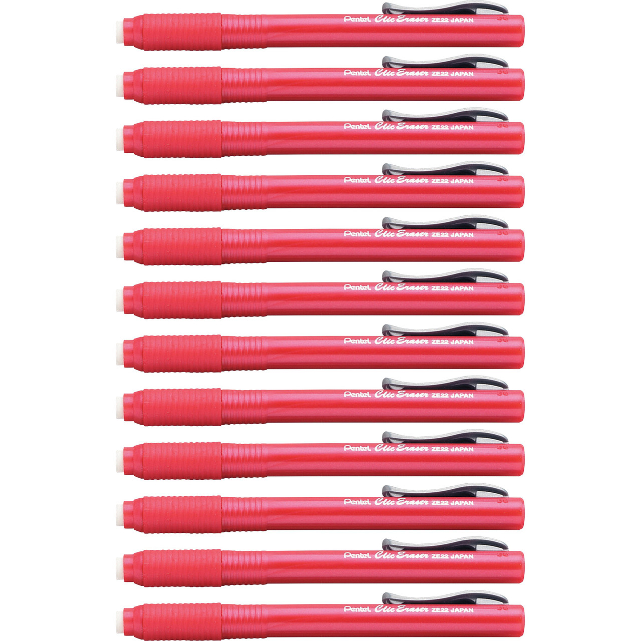 Pentel Rubber Grip Clic Eraser - Red Barrel - Pen - Refillable - 12 / Box - Retractable, Latex-free Grip, Pocket Clip, Ghost Resistant, Non-abrasive