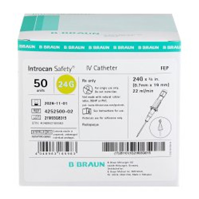 Peripheral IV Catheter Introcan Safety® 24 Gauge 0.55 Inch FEP Polymer Straight Hub Non Blood Control Passive Safety