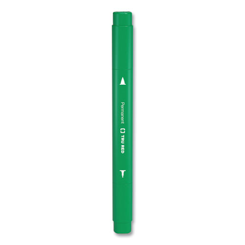 Permanent Marker, Pen-Style Twin-Tip, Extra-Fine/Fine Bullet/Needle Tips, Green, Dozen