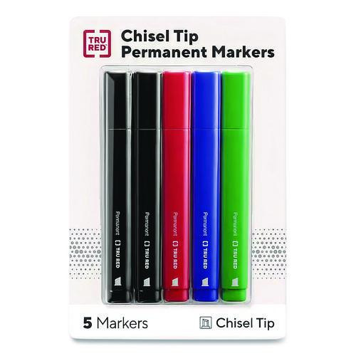Permanent Marker, Tank-Style, Medium Chisel Tip, Assorted Colors, 5/Pack