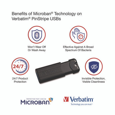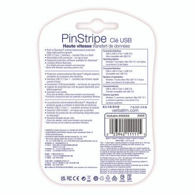 Pinstripe Usb 3.2 Flash Drive, 128 Gb, Black