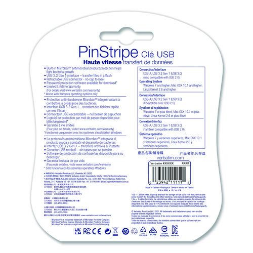 Pinstripe Usb 3.2 Flash Drive, 64 Gb, Assorted Colors, 5/pack
