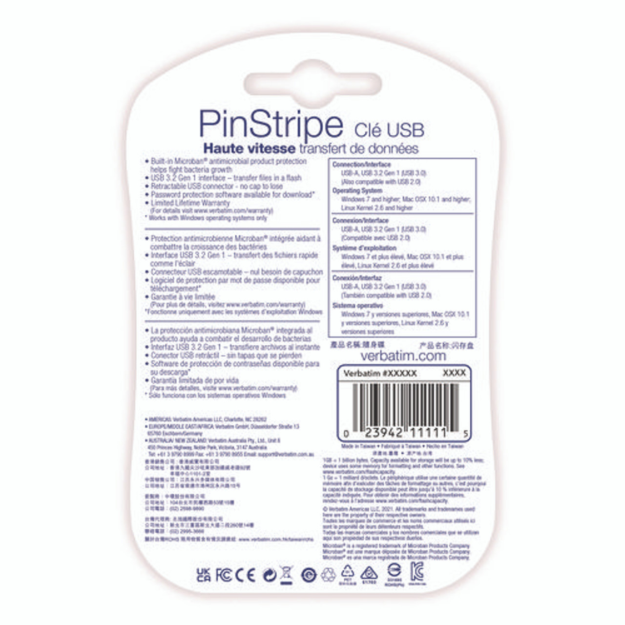 Pinstripe Usb 3.2 Flash Drive, 64 Gb, Black