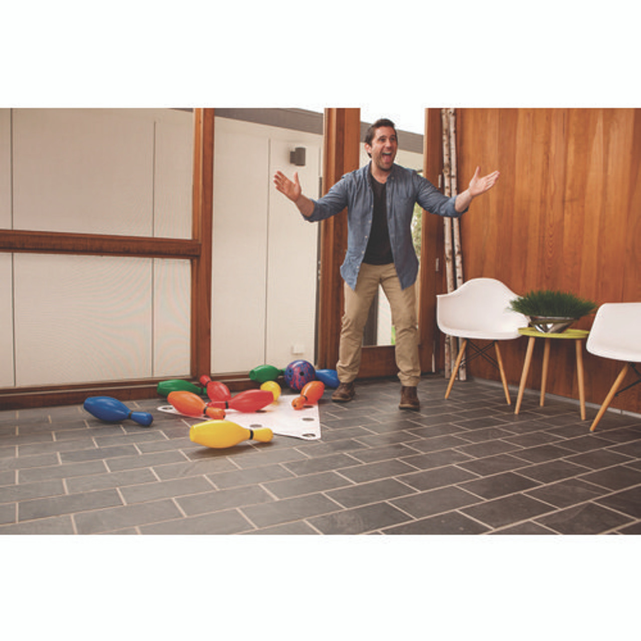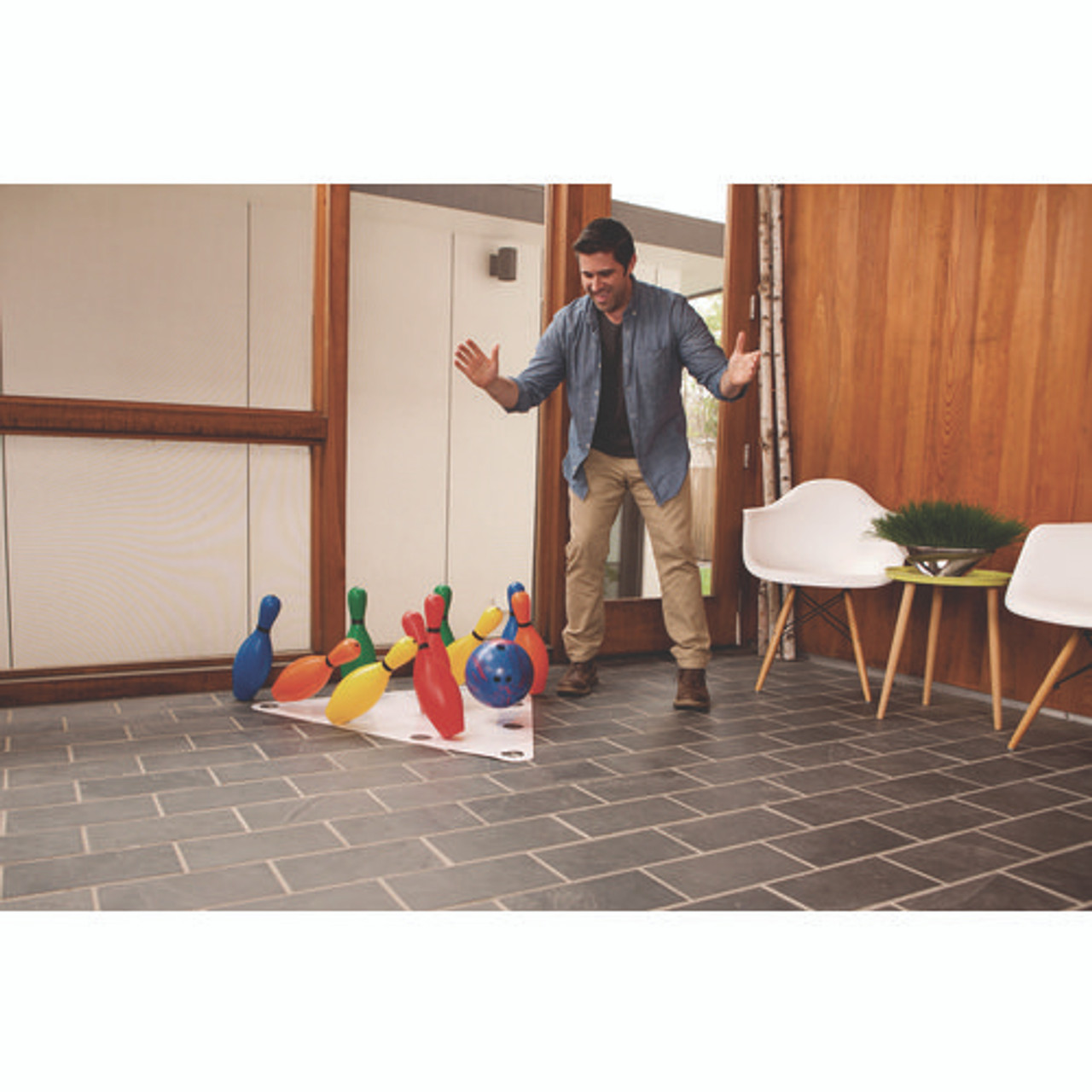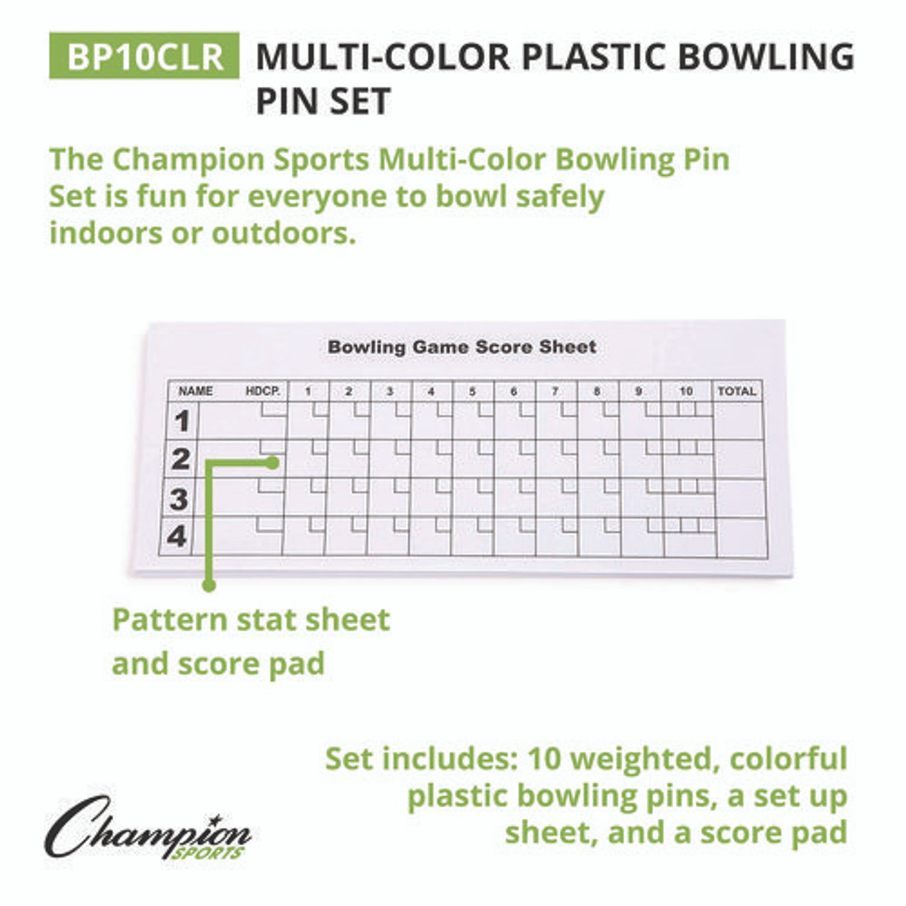 Plastic Bowling Pin Set, Assorted Colors, 10/set