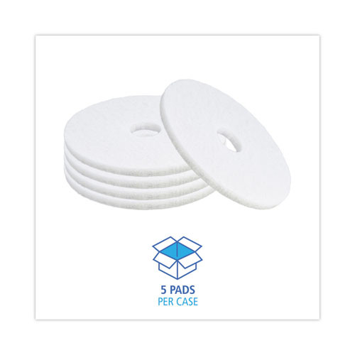 Polishing Floor Pads, 16" Diameter, White, 5/carton