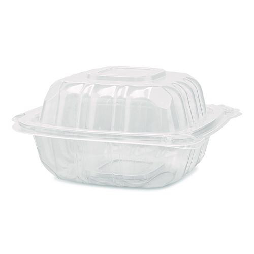 Polypropylene Plastic Hinged Container, 6 x 6 x 3.3, Clear, Plastic, 50/Pack, 6 Packs/Carton