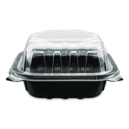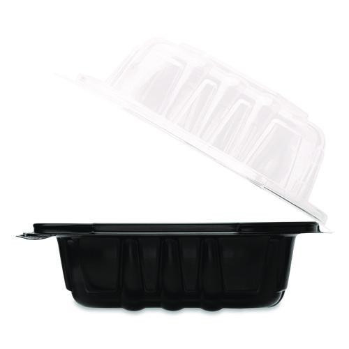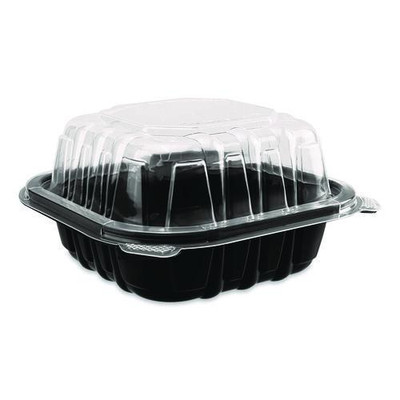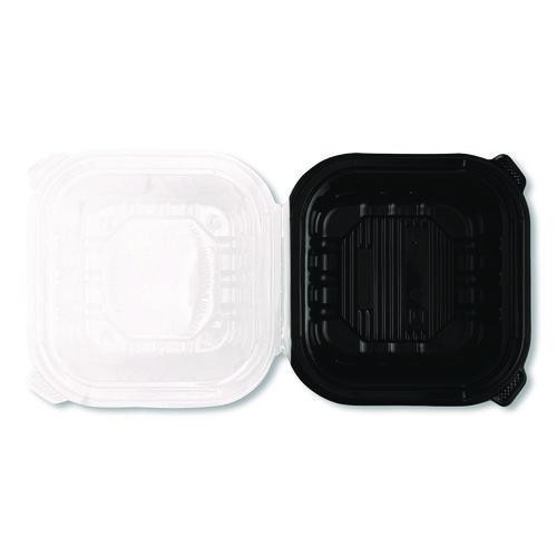 Polypropylene Plastic Hinged Container, 6 x 6 x 3, Black/Clear, Plastic, 50/Pack, 6 Packs/Carton