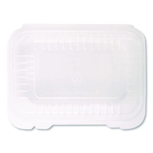 Karat® polypropylene and premium polypropylene containers are made of high-quality polypropylene, equipped with pull-lock tabs, and can handle temperatures from -14°F to 220°F. Ideal for hot, fresh food and microwaving, featuring four vents. These containers are very sturdy and versatile, making them suitable for all types of food packaging. Food Container Type: Hinged Lid Container; Material(s): Polypropylene; Material Type: Plastic; Color(s): Clear.