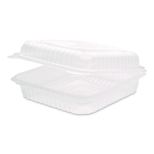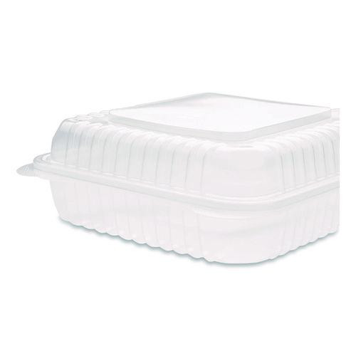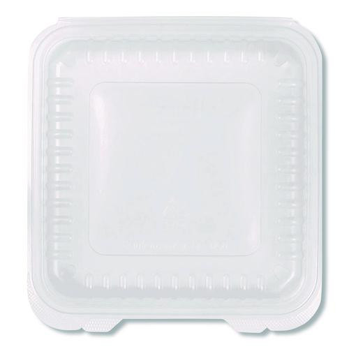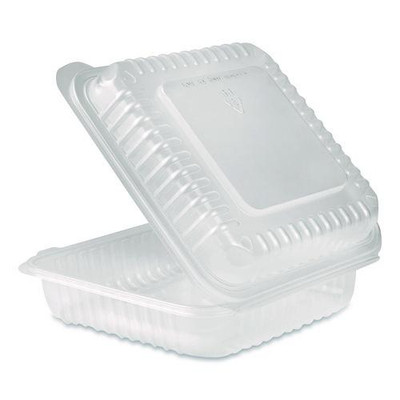 Polypropylene Plastic Hinged Container, 9.35 x 9.22 x 3.17, Clear, Plastic, 50/Pack, 4 Packs/Carton