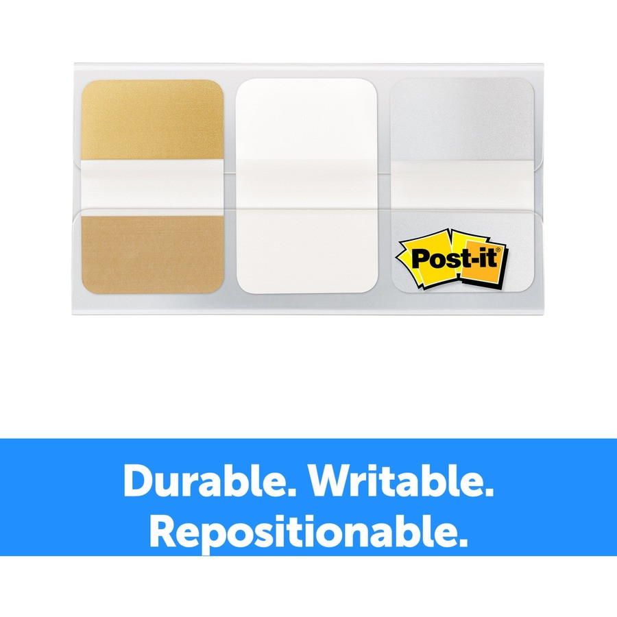 Post-it® Durable Tabs - 12 Tab(s)/Set - 1" Tab Height x 1.50" Tab Width - Gold, Silver Tab(s) - Removable - 36 / Pack