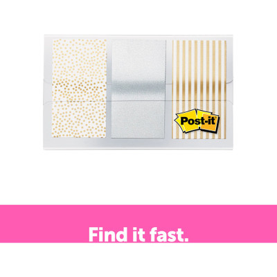The Post-it Flags fit right into your day planner to add design and make your important information stand out. The pastel colors and gradient design offer new ways to personalize your notes. They work great for planners, binders, file folders and textbooks as they stick securely but remove cleanly. Removable adhesive lets you apply and remove flags to mark your place, tab and highlight information. Copy shows through flags. Write on flags to customize. Included dispenser dispenses one flag at a time.