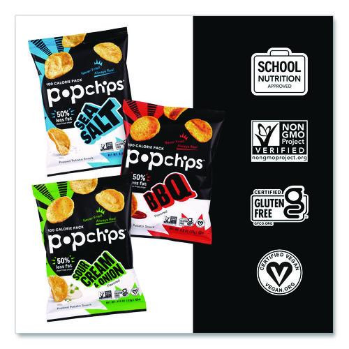 Potato Chips, Variety Pack, Barbeque, Sea Salt, Sour Cream and Onion, 0.8 oz Bag, 30/Pack