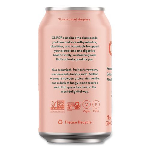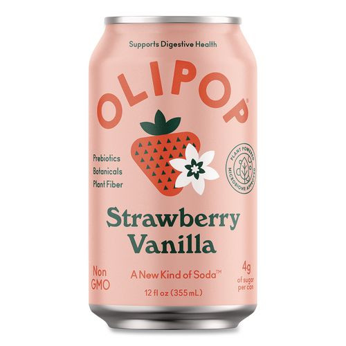 Prebiotic Soda, Strawberry Vanilla, 12 oz Can, 12/Carton