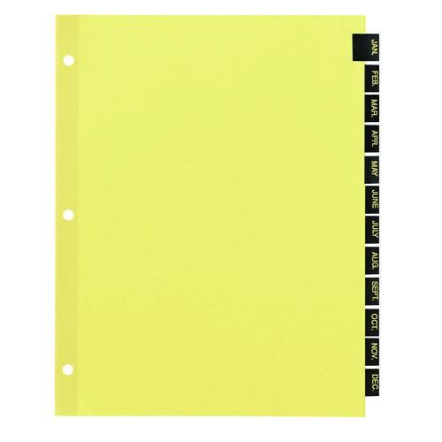 Preprinted Black Leather Tab Dividers, 12-tab, Jan. To Dec., 11 X 8.5, Buff, 1 Set